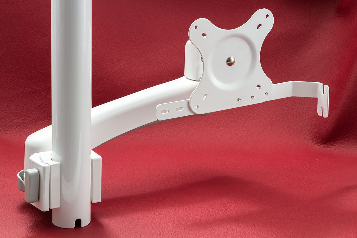 Высота (в упаковке): 7.5 см Ширина (в упаковке): 13 см Длина (в упаковке): 42 см Вес (в упаковке): 1.25 кг (общий) Изготовленный из высококачественной стали марки А10 и держатель покрыт порошковой антибактерицидной краской. При помощи удобной конструкции можно регулировать усилие сдвига монитора, а также крепить монитор на различные поверхности